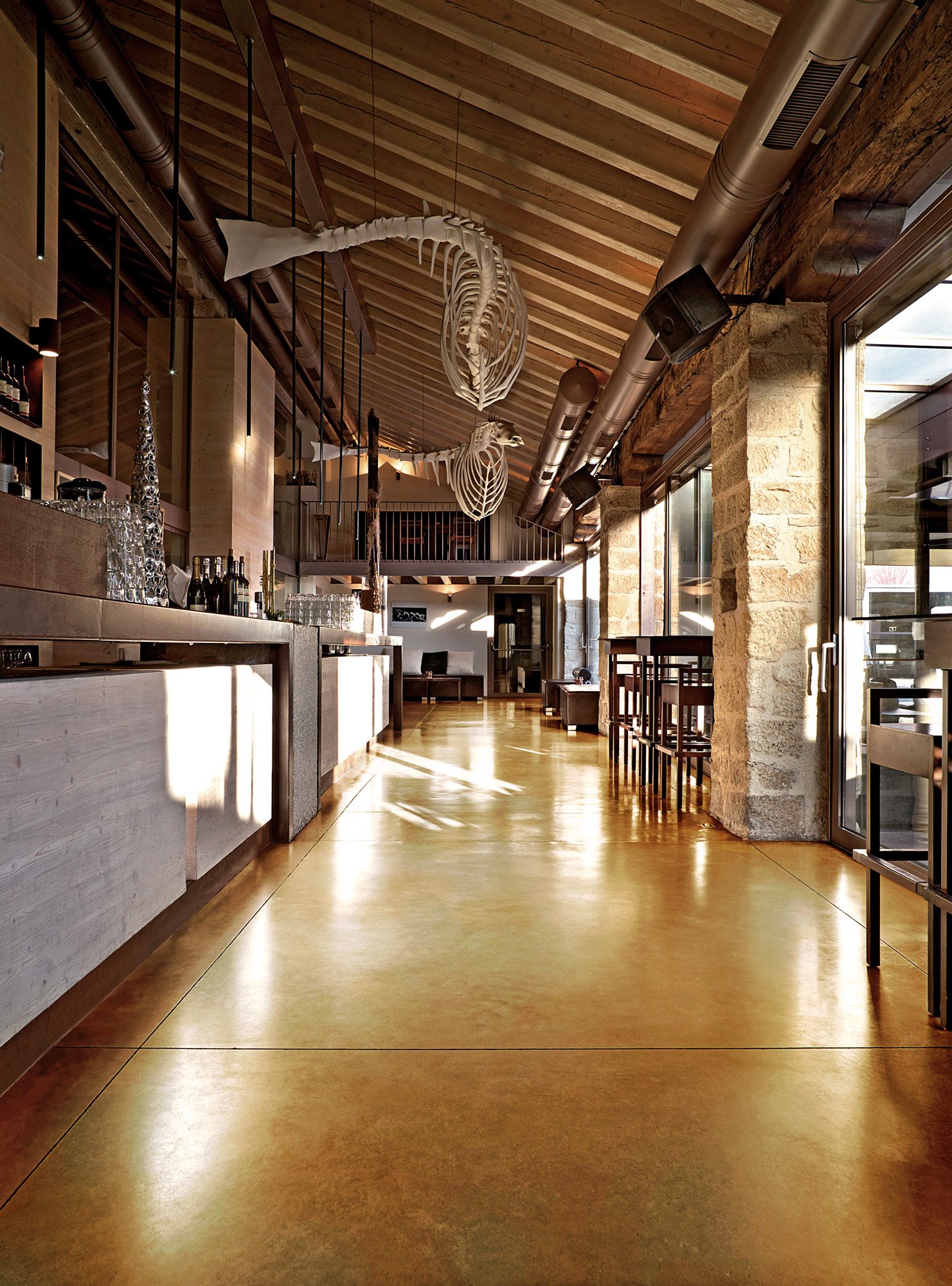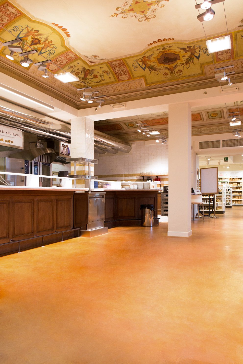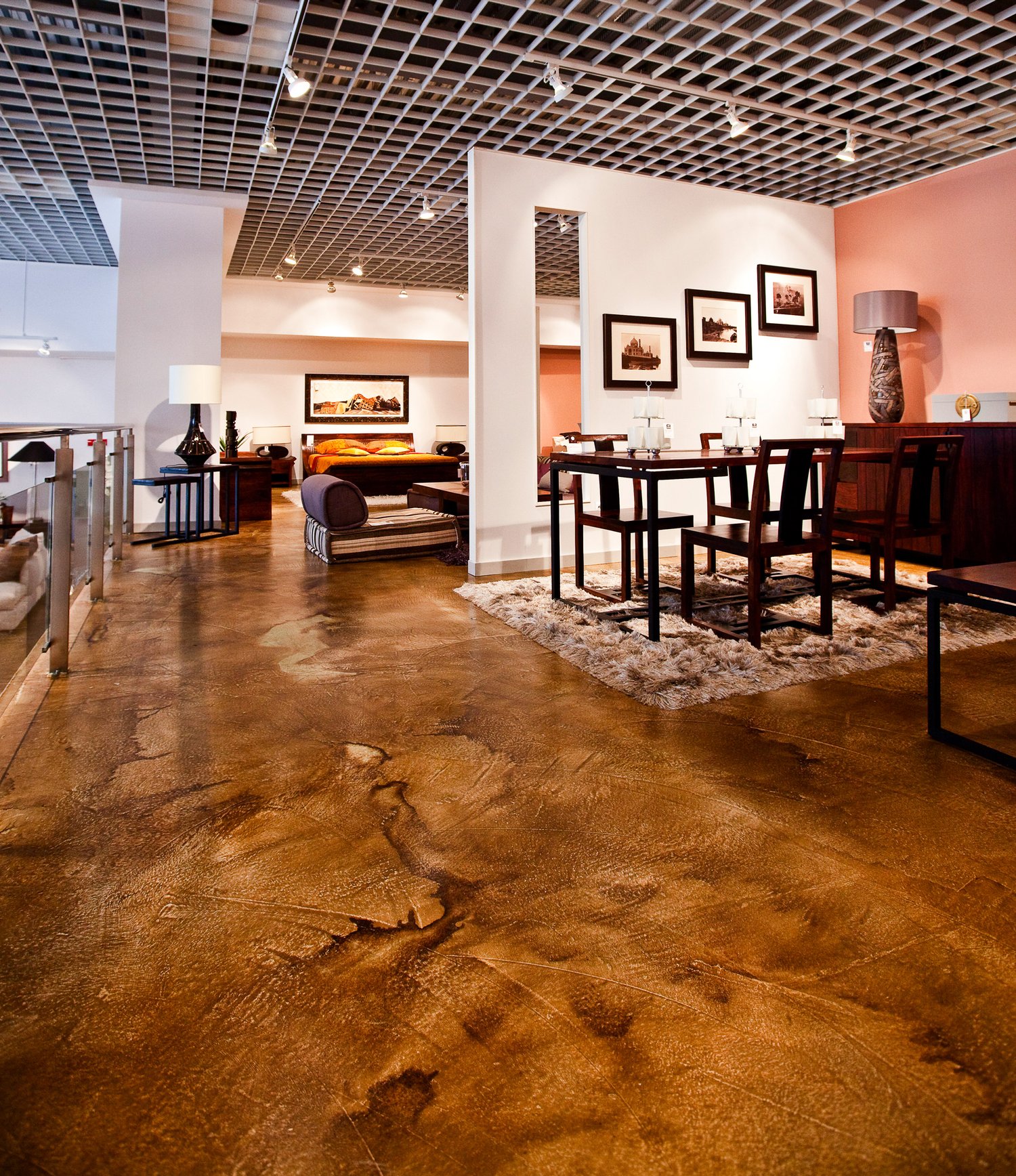 Ticari tesisler bakımı kolay renkli zeminlerle parlar. Dayanıklılık ve aşınma direnci açısından, asitle boyanmış betonun rengi, akrilik boyalarla veya hızla soyulabilen, solabilen veya parçalanabilen diğer reçine türleriyle işlenmiş beton yüzeylerden daha kalitelidir.
