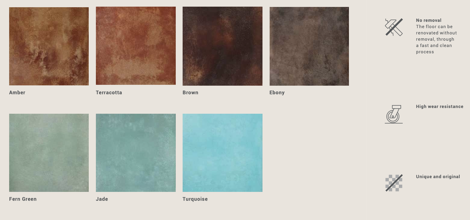 Ideal Stain® asitleri, betonla kimyasal reaksiyonları sayesinde yüzeyin bir parçası haline gelir. Solmaya, bozulmaya, çatlamaya veya soyulmaya maruz kalmazlar.
