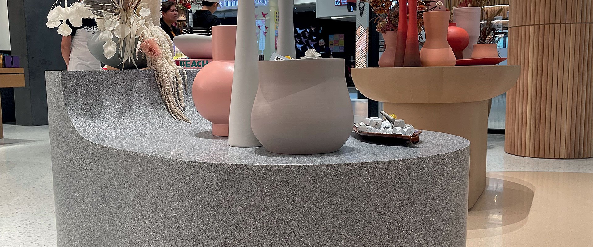 Mermer-çimento karolarımızın çok yönlülüğü, Venedik terrazzo geleneğini çağrıştırırken özel tasarımlara dayalı ilgi çekici geometrik desenlerin yaratılmasına çok uygun hale getirir. Renk tutarlılığı, aşınma direnci ve kolay bakımı, terrazzo zemin kaplamalarını geniş, yoğun trafiğe sahip yüzey alanları için ideal hale getirir.